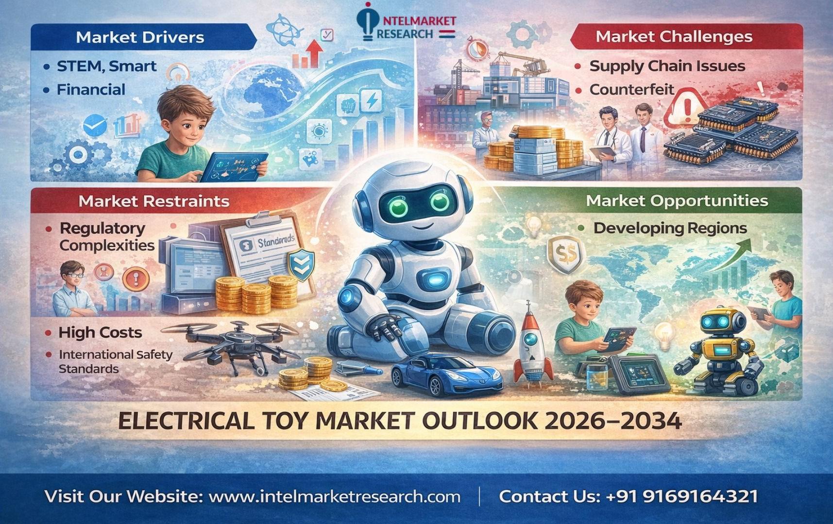 This comprehensive report provides exhaustive insights into the global Electrical Toy Market - from macro-level industry dynamics to micro-details including competitive landscapes, technological trends, regulatory frameworks, and value chain analysis. The research empowers stakeholders to identify growth opportunities while navigating market complexities through: