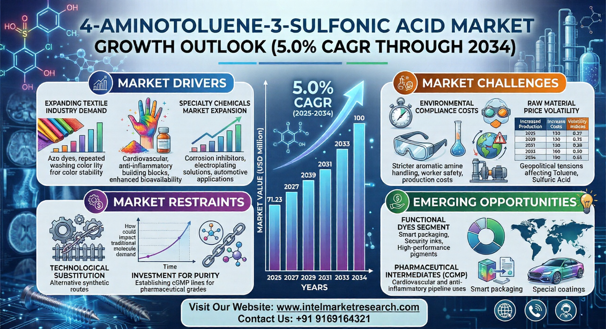 According to a new report from Intel Market Research, the global 4-Aminotoluene-3-Sulfonic Acid market was valued at USD 71.23 million in 2025 and is projected to reach USD 100 million by 2034, growing at a CAGR of 5.0% during the forecast period (2025-2034). This growth is driven by increasing demand from dye & pigment industries and expanding pharmaceutical applications.