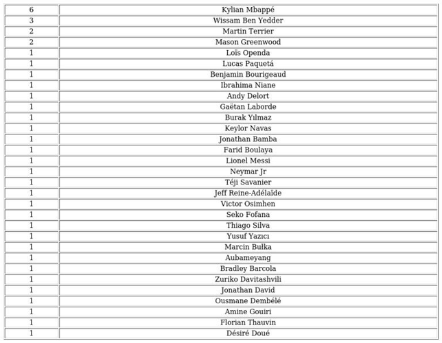 Award recipients come from a variety of clubs across France’s top division, representing different nations and positions.