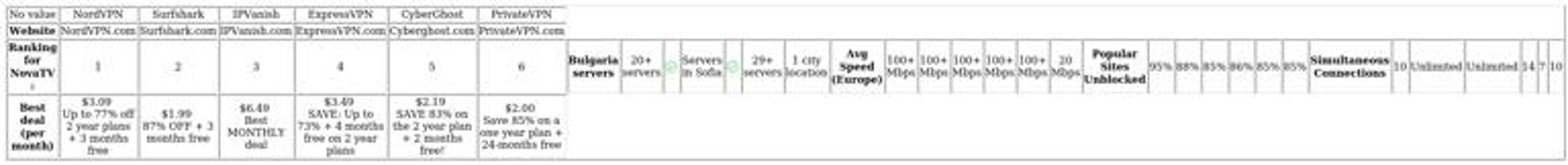 Final assessment confirms excellent performance for international streaming needs Unblocks NovaTV  Tested Oct 2025Boasting an extensive global network, CyberGhost places over 10,000 servers across more than 100 nations, with multiple options readily available within Bulgaria itself.