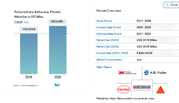The Polyurethane Adhesives Market Size was valued at USD 14.70 billion in 2024 and is projected to reach USD 18.45 billion by 2028, registering a steady growth rate during the forecast period.