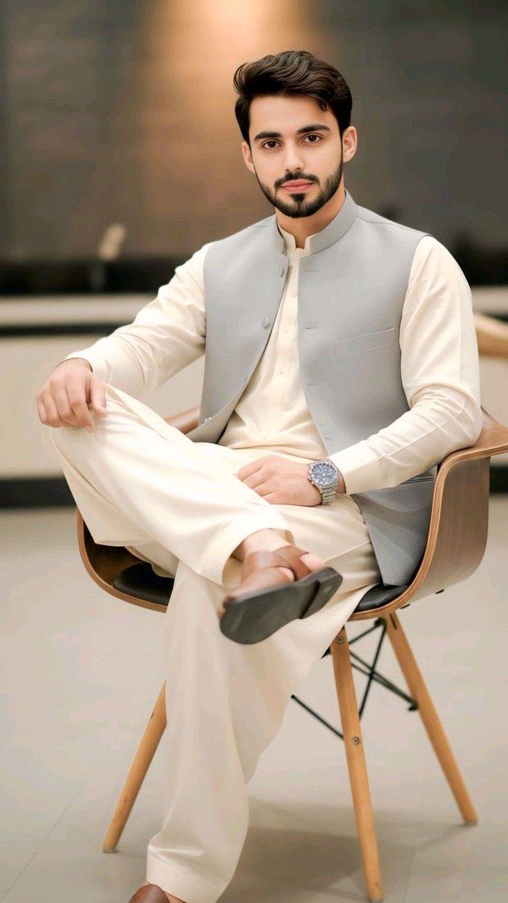 For Eid celebrations, a light grey waistcoat with traditional attire adds elegance while keeping your look refined and modern.