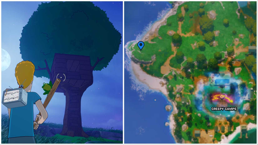 Located in the northern western corner of the battlefield, players can find this mysterious site perched atop a hill overlooking the ocean. For those exploring nearby areas like the creepy camps, the treehouse is easily spotted northwest of these locations.